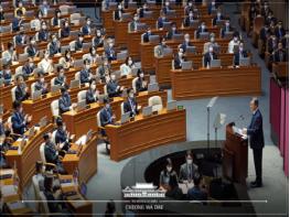 이어 대통령은 "20대 국회의 많은 입법 성과에 의해 우리는 혁신적 포용국가의 기틀을 마련할 수 있었다"며 일본 수출규제, 1·2차 추경 처리, 코로나 위기 대응을 예로 들었다.