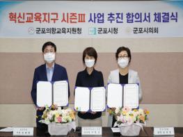 군포의왕교육지원청(교육장 지명숙)은 20일(월) 군포시(시장 한대희), 군포시의회(의장 성복임)와 ‘혁신교육지구 시즌Ⅲ 추진 합의서’를 체결했다.