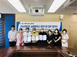 김포교육지원청(교육장 정경동)이 지난 17일 2020학년도 늘해랑학교 위탁기관 업무협약을 체결하고 방학 중 특수학생 지원을 위한 본격적인 행보를 시작했다.