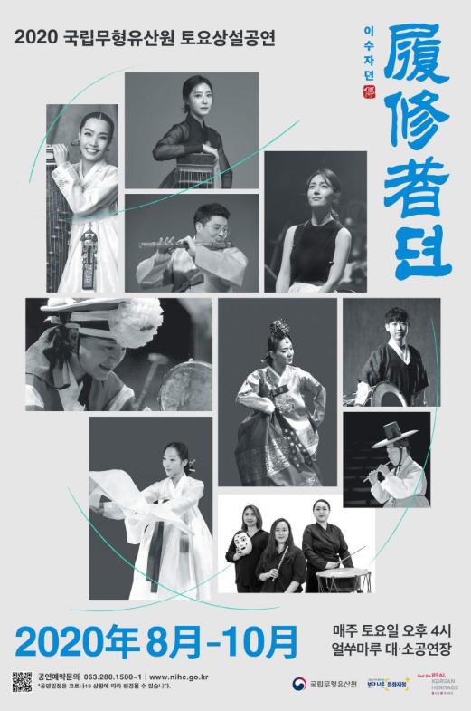 [한국4차산업신문] 문화재청 국립무형유산원(원장 김연수)은 오는 8월 1일부터 10월 31일까지 총 10차례에 걸쳐 매주 토요일 오후 4시 국립무형유산원 얼쑤마루 공연장(전북 전주시)에서 ‘2020 <이수자뎐(傳)>’을 개최한다.