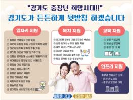 [한국4차산업신문] 경기도가 중장년 일자리지원센터를 설치해 중장년 전담 일자리 지원 기능을 강화하고 경기도형 사회 일자리 확대로 3,600여개의 일자리를 만든다. 중장년층이 겪는 갈등과 우울, 관계완화를 위한 마음돌봄 지원 등 50·60대를 위한 다양한 복지정책도 강화한다.