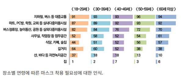 한편 정 본부장은 “최근 마스크 착용 관련 인식조사 결과, 코로나19 전파위험성이 높은 식당, 카페, 술집에서의 마스크 착용 필요성에 대한 인식이 낮아서 마스크 착용에 대한 잘못된 인식이 존재하는 것을 확인할 수 있었다”고 설명했다.