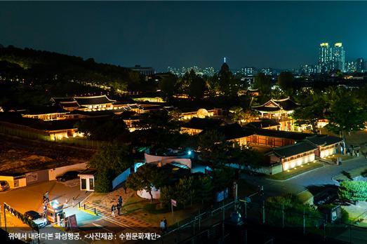 . 검소하지만 격조 있는 건물을 부각하기 위해 조명과 음악에 공을 들였다. 화성행궁 야간 개장은 10월 30일까지 오후 6시~9시 30분에 운영하며(월·화요일 휴장), 화성행궁 입장료(어른 1500원, 청소년 1000원, 어린이 700원)로 관람할 수 있다.
