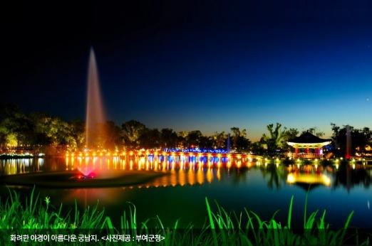 부여 궁남지(사적 135호)는 백제 무왕 때 만든 것으로 보이며, 우리나라에서 가장 오래된 인공 연못이다. 여름에는 치렁치렁 늘어진 버드나무 가지가 바람에 흩날리고, 거대한 습지에서는 형형색색 화려한 연꽃이 핀다. 밤이면 연못 안 포룡정 일대에 조명이 들어와 반짝반짝 빛나는 모습이 일품이다.