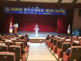 완주군체육회(회장 이종준)는 최근향토문화예술회관에서 완주군체육회 제3차 이사회를 개최하고 민선 체육회장 이후 새로운 이사진에게 위촉장을 전달하였다.