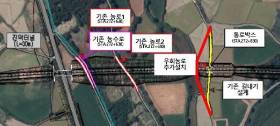 공단은 끊긴 기존 농로 두 곳과 농수로를 본래의 위치에 설치하고 통로박스 인근에 우회농로를 설치하기 위해 우선 총사업비를 확보하기로 했다.