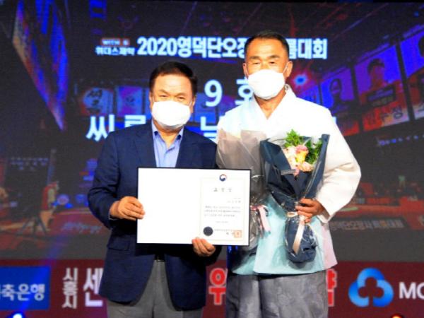 [한국4차산업신문] 구미시청 씨름팀 김종화 감독이 지난25일(토) ‘2020영덕단오장사씨름대회’가 열린 영덕문화체육센터에서「씨름의 날」을 맞아 문화체육관광부장관 표창(지도 부문)을 수상하였다.