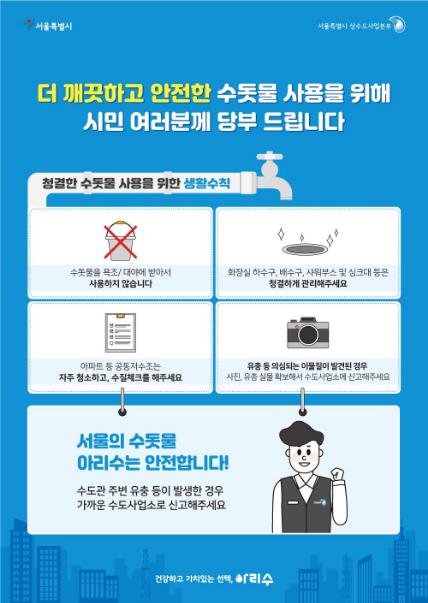 한편, 서울시 상수도사업본부는 장마가 길어지는 요즘 더 깨끗하고 안전하게 수돗물 사용할 수 있도록 시민 행동요령을 안내하기도 했다.