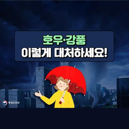 - 강풍이 불 때 : 유리창 및 건물 간판 근처는 강풍으로 인해 물건들이 떨어질 수 있으니 공터나 건물 안으로 대피하세요!