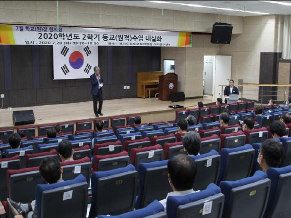 경기도김포교육지원청(교육장 정경동)이 7월 28일 유·초·중·고·특수학교장 87명이 참석한 가운데, 2학기 등교수업 내실화 및 원격수업 지원 방안에 대한 협의를 실시했다.