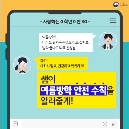 “잠깐! 다치지 말고, 건강하고 씩씩하게! 쌤이 여름방학 안전 수칙을 알려줄게!”