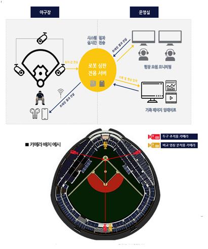 각 구장에 설치된 로봇심판 전용 투구 트래킹 시스템은 총 3대의 카메라가 사전 측정된 마운드, 홈 플레이트, 베이스 등 고정 그라운드 위치 정보를 토대로 경기에서의 모든 투구를 실시간 트래킹하여 각 타자별로 설정된 스트라이크 존 통과 시 해당 투구의 위치를 측정하여 자동으로 볼-스트라이크 여부를 판단한다. 이와 같이 측정된 각 투구별 판정 결과는 로봇심판 전용 어플리케이션을 통해 음성으로 변환되어 주심이 착용하고 있는 이어폰을 통해 전달된다.