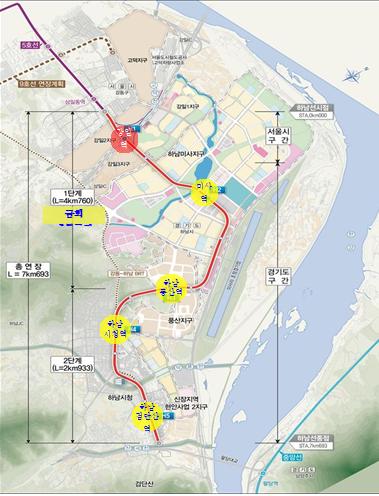 하남선 2단계 구간(하남풍산역~하남검단산역)은 철도종합시험운행을 거쳐 올해 말 개통할 예정이다.