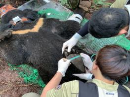 이번에 포획한 반달가슴곰은 발신기를 착용한 흔적이 없는 수컷으로 몸무게는 141kg, 연령은 5~6세로 추정되며 건강 상태는 양호한 것으로 확인되었다.