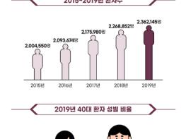 40대 환자의 진료비부담금은 크게 증가해왔는데요. 지난 4년간 27% 증가해 약 614억 원이 됐습니다.