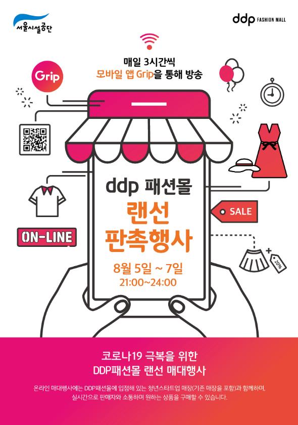 원래 DDP패션몰은 여성의류 도매상가로 소비자와 직접 거래하지 않았으나, 코로나 19로 인한 ‘20년 신상품 판매 부진을 극복하고자 모바일 라이브쇼핑기업인 GRIP과 협업을 통해 실시간 생방송으로 상품을 소개하고 판매하는 ‘DDP패션몰 랜선 판촉행사’를 진행한다.