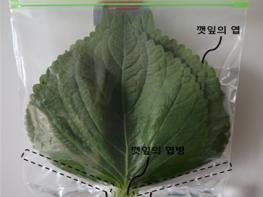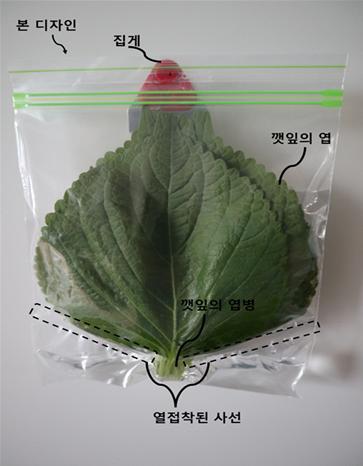 농촌진흥청(청장 김경규)은 가정에서 깻잎을 싱싱하게 보관할 수 있도록 깻잎 잎자루(꼭지 부분)를 물에 담가 냉장고 문 쪽 선반에 걸어 둘 수 있는 포장용 봉지 도안을 개발했다.