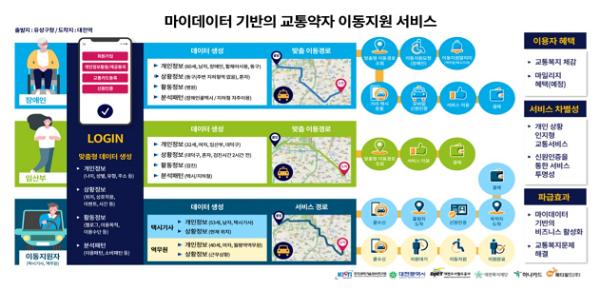 대전시는 과학산업국과 교통건설국의 협업체계를 기반으로 주관기관인 KISTI를 포함해 하나카드(주), 대전도시철도공사, 대전복지재단, 메타빌드(주)와 함께 컨소시엄을 구성해 ‘마이데이터 기반 교통약자 이동지원 서비스사업’을 공동 기획했으며, 이번 정부 실증사업에 선정되어 국비 6.5억원을 지원받는다.