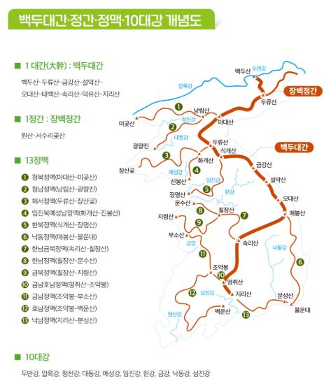 백두대간은 백두산에서 시작해 금강산, 설악산, 태백산, 소백산을 거쳐 지리산으로 이어지는 한반도의 핵심 산줄기이며, ’05년부터 백두대간 보호지역을 지정·관리하고 있다.