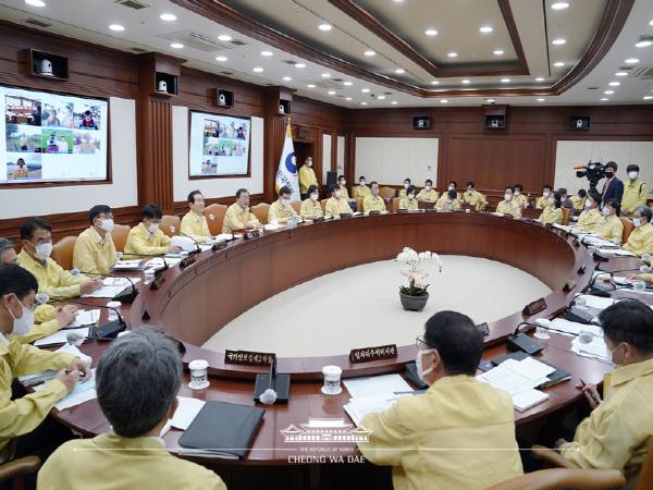 지자체(전남, 경남) 보고, 수해복구 현장 점검, 관련 부처의 집중호우 현장 보고 후 행정안전부 장관의 피해 상황 점검 및 긴급복구 계획, 경제부총리 겸 기획재정부 장관의 긴급복구 예산 지원 방안 보고가 있었다.