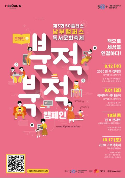 올해로 3회 째 열리는 ‘북적북적 캠페인’는 서울시50플러스재단이 구로구청과 함께 매년 개최하는 지역축제로 50 세대와 서울 서남권 시민들에게 책을 매개로 지식과 문화를 향유하는 기회를 선사하고자 마련되었다.
