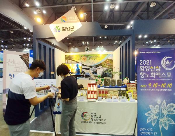 군은 이번 박람회에서 3년~10년산 산양삼을 비롯 산양삼가공특산품, 솔송주·담솔 등 전통주, 여주제품, 죽염제품 등 청정 지리산 함양에서 생산되는 항노화 농·특산물을 전시하고, 홍보관을 방문하는 참관객을 대상으로 함양의 대표적인 특산품을 증정하는 이벤트도 실시할 계획이다.