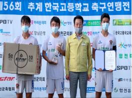 이날 시상식에 앞서 한국고등학교축구연맹은 합천군에 골대 1세트와 체육시설 수해복구 성금(각 5백만원 상당)을 전달, 훈훈한 마음을 전했다.