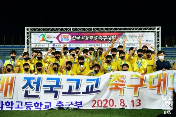 유성생과고는 13일 군산 월명종합경기장에서 열린 2020 금석배 전국고등학교학생축구대회에서 충남천안제일고와 0-0 무승부 뒤 승부차기 5-3 승리로 우승을 차지했다. 2019년에도 천안제일고와 금석배 결승에서 만나 승리했던 유성생과고는 또 한 번 우승컵을 들어 올리며 기쁨을 만끽했다.