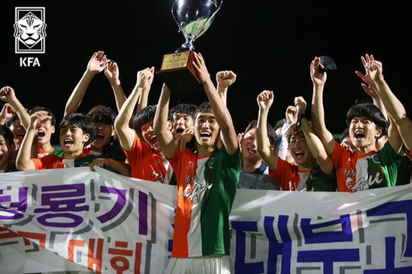 13일 저녁 고성스포츠타운 3구장에서 열린 제 57회 청룡기 전국고등학교축구대회 결승전에서 중대부고가 용인축구센터덕영U18을 2-1로 꺾고 정상에 올랐다.
