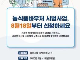 해당 가구는 오는 18일부터 31일까지 신분증을 지참하고 주소지 주민센터에 방문 신청하면 되며, 전자바우처 카드를 발급받아 9월 1일부터 국내산 과일류, 채소류, 흰우유, 신선계란 구매할 수 있다.