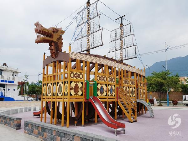 진해루 해변공원에는 거북선 모양의 놀이터가 있고, 수상 놀이시설 등 즐길 거리도 다채로워 주말이면 더 많은 사람들이 찾는다. 진해루에서 속천항까지 이어진 산책로도 걸어보길 추천하는데, 진해바다 70리길 구간이기도 한 이 길은 길이도 적당하고 바다를 낀 전망이 아름답다.