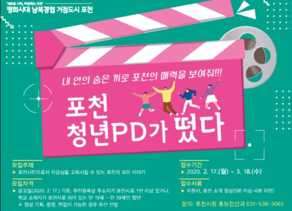 포천시는 2월 17일부터 3월 18일까지 포천 홍보 영상 콘텐츠를 제작할 청년 PD를 모집한다.