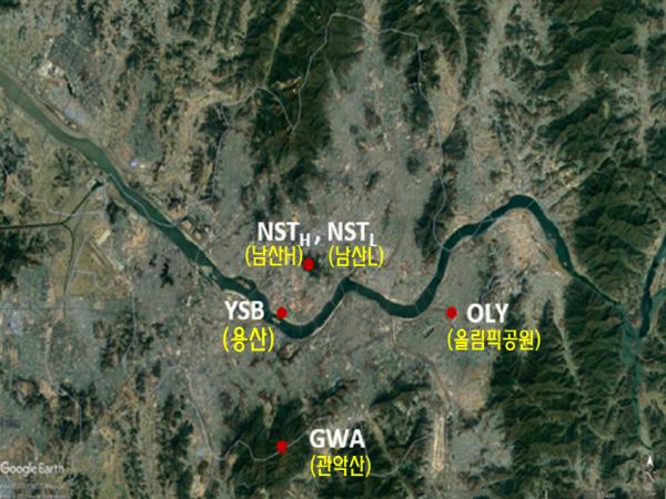 이를 위해 관악산, 남산서울타워 하층부에 설치된 서울시보건환경연구원 관측지와 용산, 남산서울타워 상층부에 설치된 서울대학교 관측지에서 이산화탄소 농도를 관측했다.