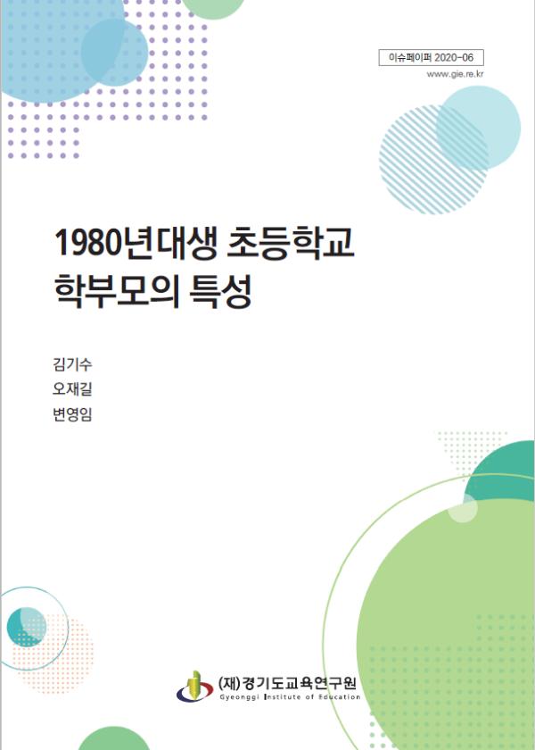 경기도교육연구원(원장 이수광)은 밀레니얼 세대 학부모의 특성을 파악하기 위하여「1980년대생 초등학교 학부모의 특성」(연구책임 선임연구위원 김기수)을 발간하였다.