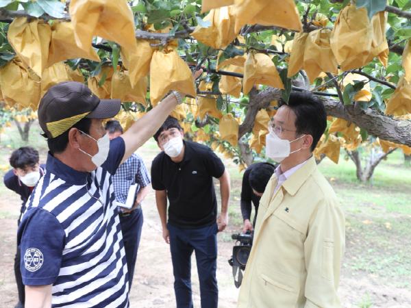 이재욱 차관은 “비바람에 의해 수확기인 배, 사과의 낙과 피해 및 호우에 따른 일부 저지대 과수원의 침수 피해 우려가 크다”며,