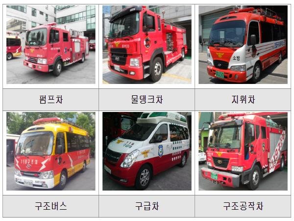 '12년부터 '19년까지 지원한 소방차는 총 127대로 ?펌프차 20대 ?물탱크차 18대 ?화학차 3대 ?구조버스 6대 ?구급차 73대 ?이동체험차 1대 ?지휘버스 6대다.