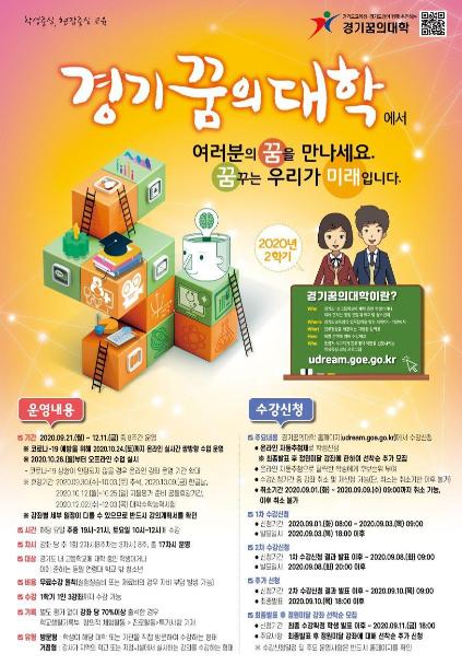 경기도교육청(교육감 이재정)이 9월 1일부터 10일까지 도내 고등학생과 학교 밖 청소년을 대상으로 ‘2020 경기꿈의대학 2학기 수강 신청’을 받는다.