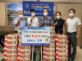 [한국4차산업신문] 세종특별자치시 아름동에 위치한 한국해양교통안전공단(이사장 이연승)이 25일 한부모 가정에게 전달해 달라며 복숭아 28박스를 아름동지역사회보장협의체(공동위원장 여상수?오미경)에 기탁했다.