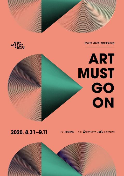 <아트 머스트 고 온>은 코로나19가 장기화됨에 따라 변화하는 창작 환경 속에서도 예술인의 활동이 지속될 수 있도록 온라인 미디어를 활용한 예술활동을 지원하는 사업이다. 예술인은 온라인을 통해 창작 활동을 지속하고, 장기적으로 오프라인에서도 다양한 작품을 만들 수 있는 기반을 마련하는 것이 목적이다.