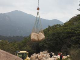 전망대 정비사업에 필요한 자재는 총 27톤가량으로 차량접근이 불가하여 헬기를 이용해 영인산 정상으로 운반하게 된다.