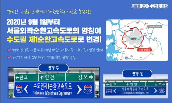 ‘서울외곽순환고속도로 명칭 변경’은 경기도가 서울의 외곽, 변두리라는 잘못된 인식을 바로잡기 위해 민선7기 이재명 경기도지사의 주요공약으로 추진한 사항이다.