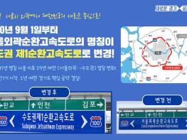 [한국4차산업신문] 1991년부터 29년간 사용해온 고속국도 제100호 ‘서울외곽순환고속도로’의 명칭이 역사 속으로 사라지고 오는 2020년 9월 1일자로 ‘수도권제1순환고속도로’로 새롭게 바뀐다.
