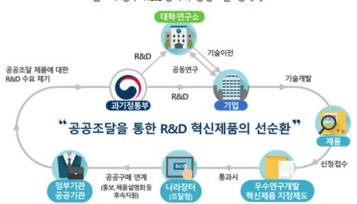 과학기술정보통신부(장관 최기영)는 과기정통부 연구개발(R&D) 과제를 통해 개발된 제품의 혁신성이 인정될 경우, 공공기관 수의계약 대상으로 허용하는 ‘우수연구개발 혁신제품 지정제도’의 신청 요건을 완화한다고 밝혔다.