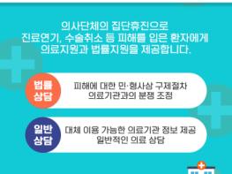 진료연기, 수술취소 등 피해를 입은 환자에게 의료지원과 법률지원을 제공하고있다.