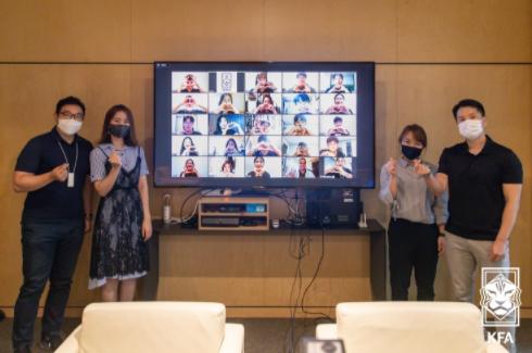 31일 오후 5시부터 두 시간 반가량 진행된 이번 프로그램에는 사전 신청과 선발을 통해 총 23명의 대학생 및 취업준비생이 참가했다. 지난달과 마찬가지로 박지혜 아나운서가 진행을 맡았고, KFA 대외교류지원팀의 박은지 대리, 안수환 대리, 변동환 사원이 참석해 자리를 빛냈다. 레이 올리비에 JFA(일본축구협회) 심판부위원장이 화상연결을 통해 깜짝 출연하기도 했다.