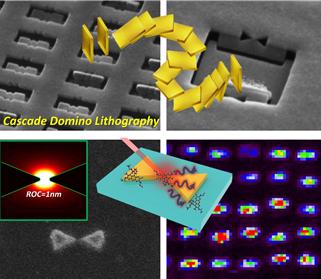 연구진은 이러한 난제를 해결하기 위해 ‘도미노’ 놀이에서 영감을 얻어 새로운 방식의 ‘연속 도미노 리소그래피’ 기술을 개발하였고, 이를 통해 기존 전자빔 리소그래피에서 제약받는 해상도를 원자수준으로 뾰족하게 만들어 나비넥타이(bowtie) 형태의 나노안테나를 개발하는 데 성공하였다.