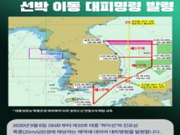 6일 오후 6시부터 ‘선박 이동 및 대피 명령’을 발령함에 따라 태풍 경로의 폭풍반경인 위험해역에서 이동 중이거나, 진입하는 모든 선박은 안전해역으로 피항해야 한다.
