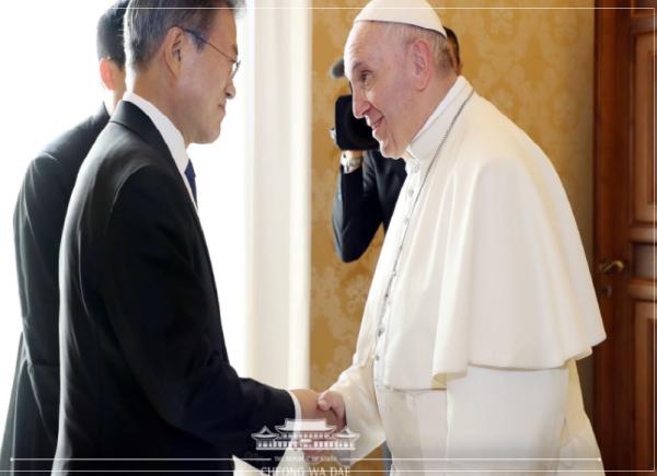 슈이레브 주한 교황청 대사는 “바티칸 방문 후 귀국 길에 프란치스코 교황 성하의 진심 어린 인사 말씀을 대통령께 전하게 되어 큰 영광”이라면서 이 같은 메시지를 전했다.