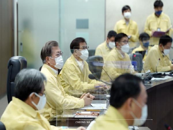 회의에선 김종석 기상청장이 태풍 현황 및 전망을, 강건작 위기관리센터장이 피해상황 및 대처현황을 보고했다. 문 대통령은 “태풍이 내륙을 벗어나 동해 해상으로 북상 중이라 하더라도 상황이 종료된 것이 아니고, 비 피해나 바람 피해가 있을 수 있다”면서 “상황이 끝날 때까지 정부와 지자체는 긴장을 유지해 달라”고 당부했다.