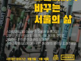 [한국4차산업신문] 서울시는 9월 9일 오후 2시 ‘스마트 모빌리티가 바꾸는 서울의 삶’에 대한 시민의 다양한 제안을 발굴하기 위해, ‘온라인 시민제안 워크숍’을 개최한다.